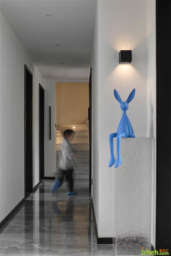 走廊處布置了一款兔子雕塑,藍(lán)色可愛的造型,起到了空間緩沖的作用,南京裝修設(shè)計(jì)成為這個(gè)家最吸睛的存在,也賦予家更多藝術(shù)性。