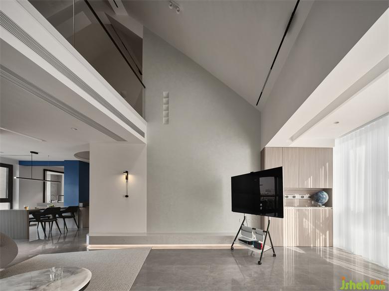 挑空的設(shè)計(jì)映入眼簾,視覺上更加開闊,簡約的既視感呼之欲出。