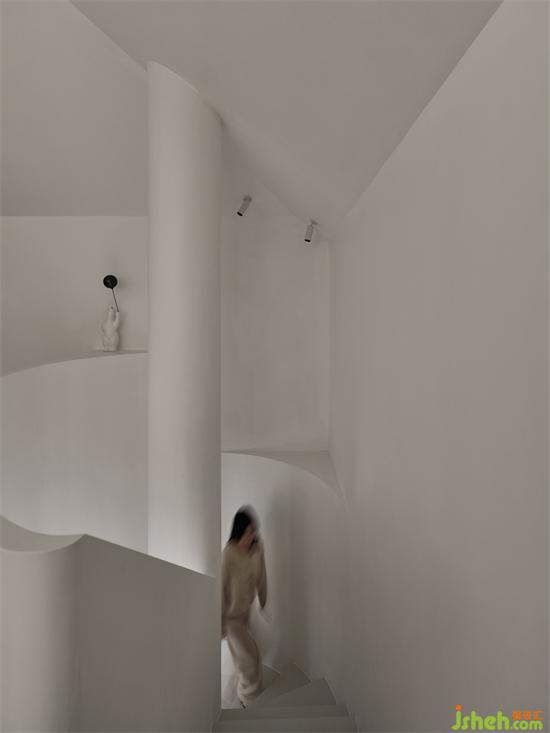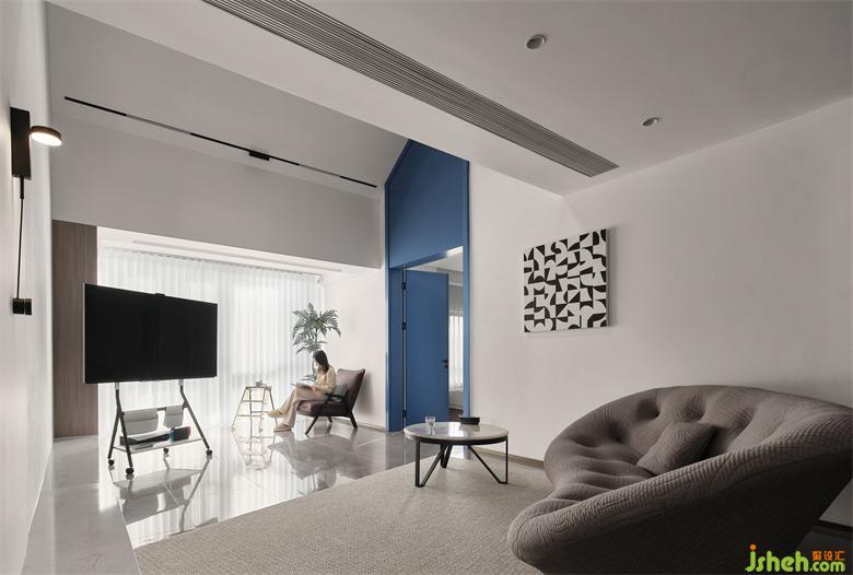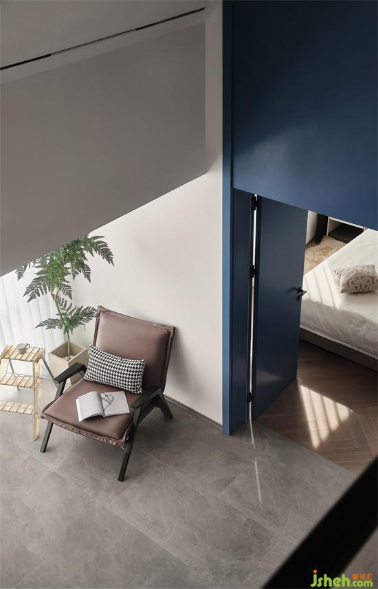 側(cè)墻和頂面梁都涂刷了藍(lán)色,帶來一種寧靜之感,在大面積留白的包裹中,又多了幾分柔和,讓空間盡顯清新和通透。