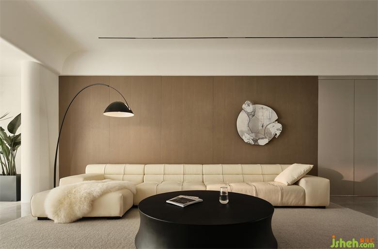 一面超大落地窗的開闊,收錄一年四季的光影流轉,滿足視覺尊享;以暖灰色+咖色為主調,呈露出本真樸實又不乏清雅的審美感受。