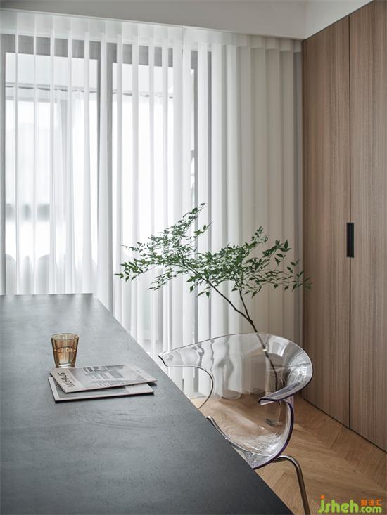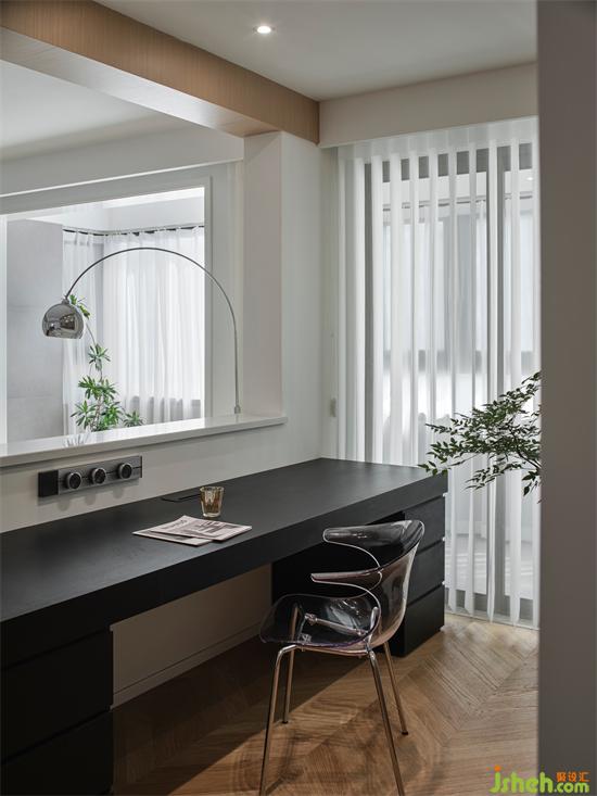 開放式書房的設(shè)計(jì),與客餐廳形成環(huán)游動(dòng)線,各空間交流無障礙,南京瓏玥名邸精裝房改造賦予空間通透感。書房與陽臺之間搭配了夢幻簾,輕柔飄逸的薄紗材質(zhì),柔和過濾強(qiáng)烈的太陽光,兼具美觀雅致和確保私密于一身,營造靜謐的工作學(xué)習(xí)氛圍。工作區(qū)背面沿墻體定制一排儲物柜,可以將一些小物品和雜物放在這里,保持空間的整齊劃一,原木色顯得自然溫潤,帶來一份溫馨舒適。