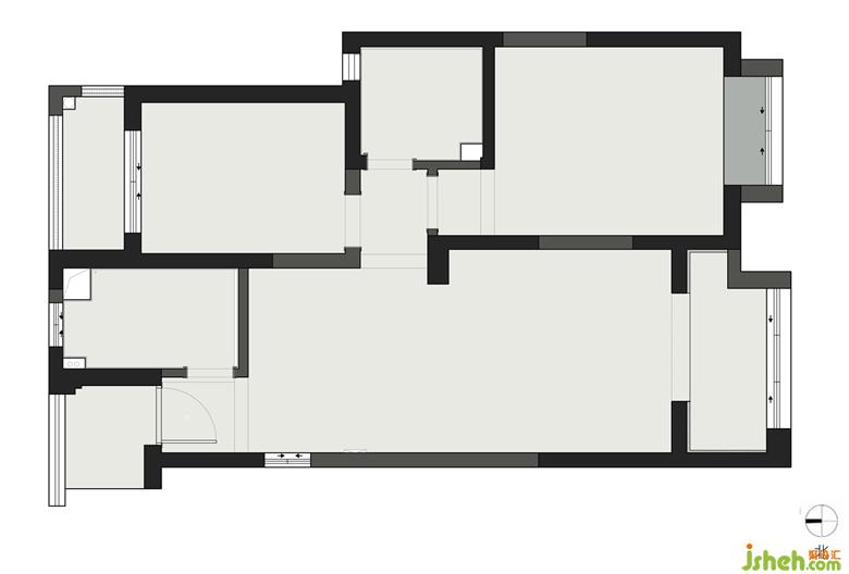 2. 北臥室拆除進(jìn)門兩側(cè)墻體,將進(jìn)門位置調(diào)整至廚房一側(cè),在北臥室墻體外側(cè)設(shè)置一處洗漱干區(qū),方便了公共區(qū)的洗漱;