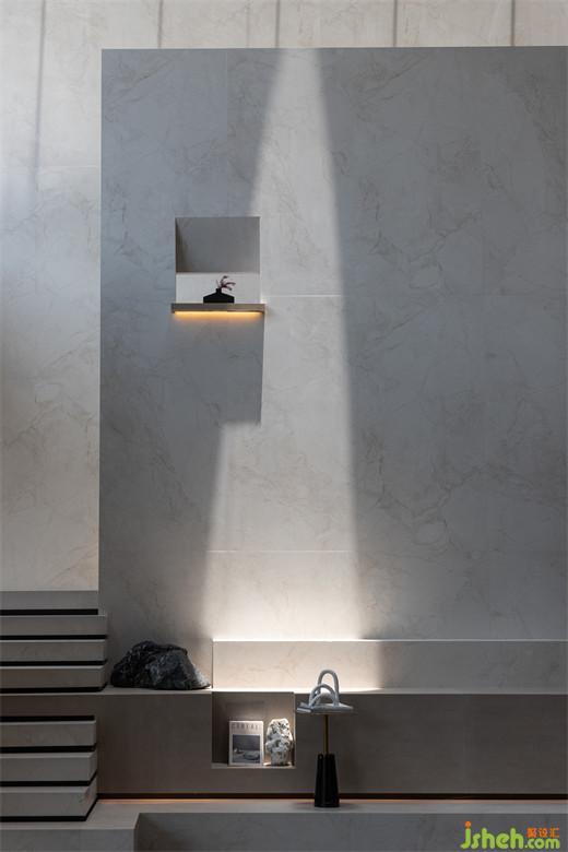 光線在空間內(nèi)游走、盤回、起伏,以純粹直接的感官體驗,加深了人對色彩、形狀、重量的捕捉和定義。片山有致,寸石生情,自然成景。瓷磚本身,就是微縮的景致,在咫尺之間,打開了空間,擬態(tài)出自然勝境。