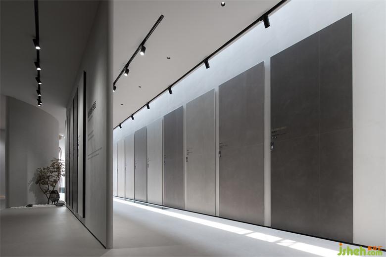 二層空間延續(xù)其他場(chǎng)域的布展形式,瓷磚展廳設(shè)計(jì)讓多元化產(chǎn)品以成系列的方式展示,空間的界限被打破,便于進(jìn)一步探索內(nèi)與外、人與物的關(guān)系。置入藝術(shù)裝置,為藝術(shù)和自然精神的相互滲透提供了切入點(diǎn)。