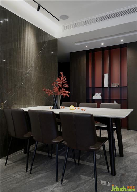家居裝修設計開放式餐廳延續(xù)了客廳色彩,空間整體融洽平和,視覺上拉長空間通暢感官,相互之間生活節(jié)奏互相影響而成一體。