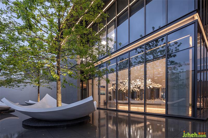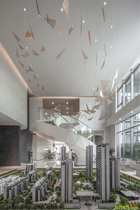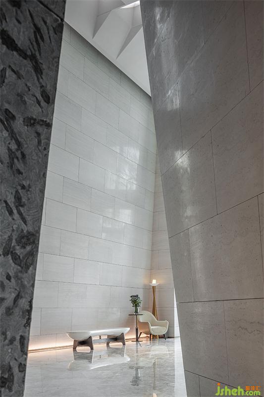 空間不是展示建構的場所,而是擁有減少讓注意力分散的誘惑,當入口的視覺聚焦被藝術的主題思想而鏈接,由外而內(nèi),光柱絲線切割形成的幾何幕墻,展現(xiàn)著理想生活城的理念,一半是功能,而另一半則是,藝術。