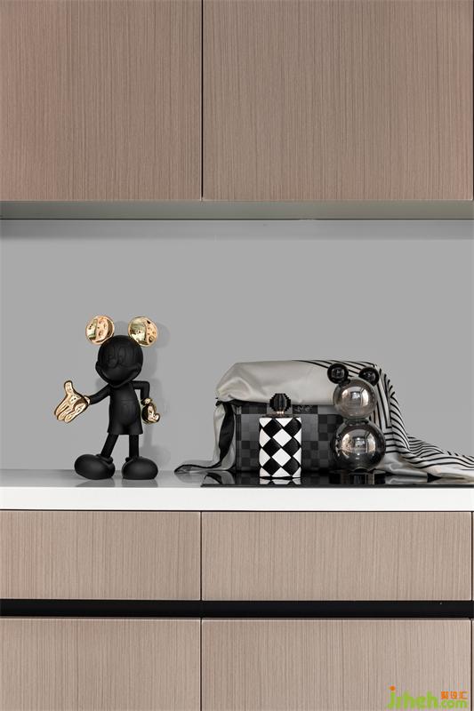 C戶型從入戶玄關(guān)到客餐廳、臥室及陽臺,一系列的空間中不斷出現(xiàn)米奇元素,為了在空間里添加足夠的記憶點(diǎn),局部我們也運(yùn)用了黑白色系的波點(diǎn)做為點(diǎn)綴,讓空間充滿活潑與趣味性。