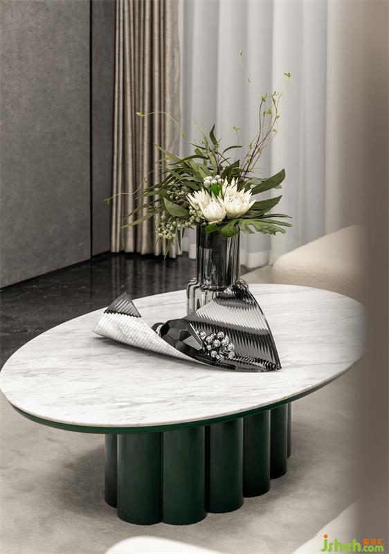 軟裝簡約明快,活潑自然。在淺灰色調(diào)的基礎(chǔ)上,我們利用柔美的線條,生動的色彩,將清靜與優(yōu)雅存于空間。茶幾、沙發(fā)凳、抱枕等用品,以高飽和度的綠色,流露出濃濃的自然風(fēng)情,讓空間生機勃勃。意大利進口竹節(jié)落地?zé)粢詧A潤的造型示人,豐富了空間變化,舒緩了快節(jié)奏的城市生活,彰顯出悠然灑脫的生存哲學(xué)。