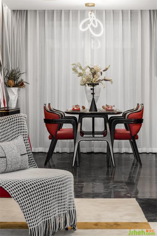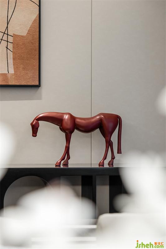 休閑愜意是居住空間的基調(diào),忙碌之余,和家人在此交流、放松,感受生活的樂趣,同時(shí)也可接待親朋好友,這里是連接家人之間親情和朋友感情的紐帶??臻g以淺色為色彩主基調(diào),點(diǎn)綴金屬色,暗紅色,以現(xiàn)代的手法融入中式元素,又不乏端莊的儀式感。