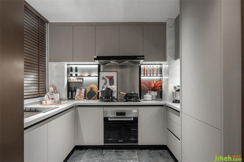 餐廳的設(shè)計(jì)延續(xù)著客廳的氛圍,布置出安適的觸感、沉浸式的體驗(yàn)感,高還原度的場景化傳達(dá)出寄情山水的理想生活追求。設(shè)計(jì)的是空間,更是生活,廚房是中式風(fēng)格主導(dǎo)的空間,用永恒的自然元素貫通所有,超越復(fù)雜的生活表象,回歸到詩意的棲居。