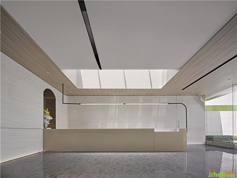 時(shí)間在天井下方的接待處,留下閃亮的金光,明亮的空間氣氛,內(nèi)外一體同呼吸。呈現(xiàn)出層迭變化的光影蘇州售樓處設(shè)計(jì),凸顯出一種自然的時(shí)序節(jié)奏,并賦予觀者一種在吐納間,涵蓋物外的心境。