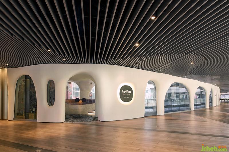 上海Tapa Tapa西班牙餐廳,位于北外灘白玉蘭廣場,其經(jīng)營理念是打造一個融合了巴塞羅那熱情和上海小資情調(diào)的餐飲空間,開創(chuàng)一個既有西方地中海浪漫風(fēng)情又兼具東方優(yōu)雅含蓄的生活場域。上海餐廳設(shè)計為了兼具融合這兩種地域文化的特點,CROX闊合以 "海的回聲" 為設(shè)計概念,將自然的渦漩體作為整個空間的基礎(chǔ),海螺的紋路一圈圈巧妙的安排在細(xì)長形的場地內(nèi),像是一處既開朗又神秘的洞穴。天然的韻律在此自由、豐富、隨心所欲的流淌,為賓客帶來非常愉悅的視覺觀感和用餐體驗。