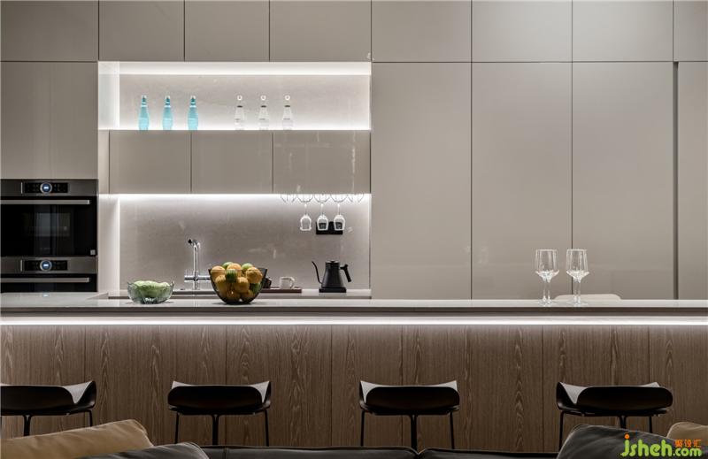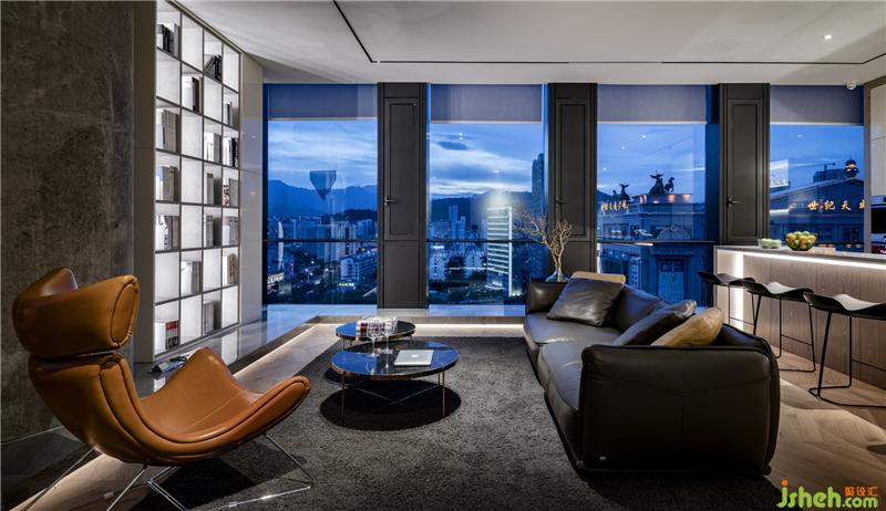 俯瞰整條向南延伸的龍巖大道,洽談區(qū)與茶室是整個(gè)工作室觀景的最佳位置。三開(kāi)的玻璃門(mén)兼具隱私與透明,保持與其他區(qū)域的通透與聯(lián)接,契合精致、穩(wěn)重的空間需求。巧妙使用藍(lán)色點(diǎn)綴黑白的空間,帶來(lái)亮色的感官體驗(yàn),呈現(xiàn)安靜卻不失力度的張力。