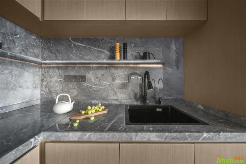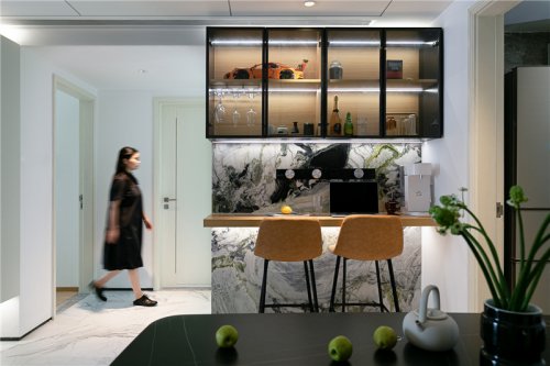 中西廚各放了一個冰箱,早餐和不涉及明火的操作可以在這里實現(xiàn),健康的生活方式也很符合屋主的生活習慣,所以使用頻率很高深圳裝修設計。