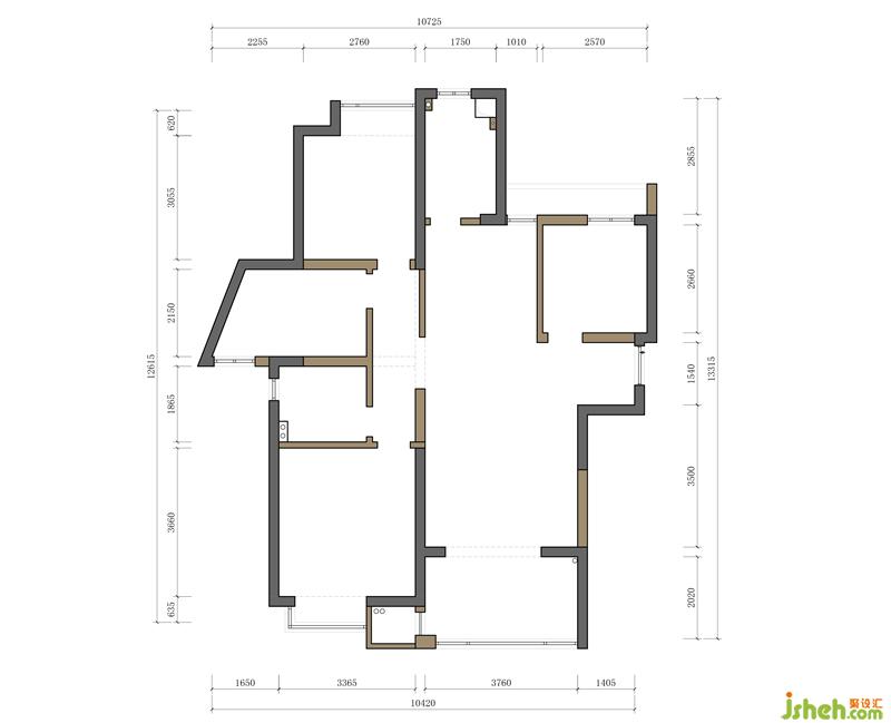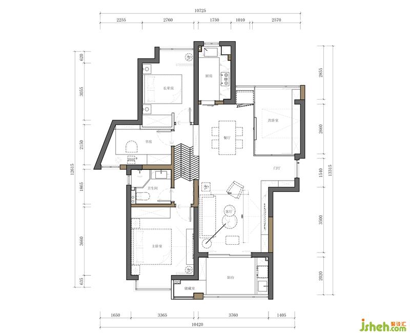 將原兩室升級(jí)為小三室的布局。