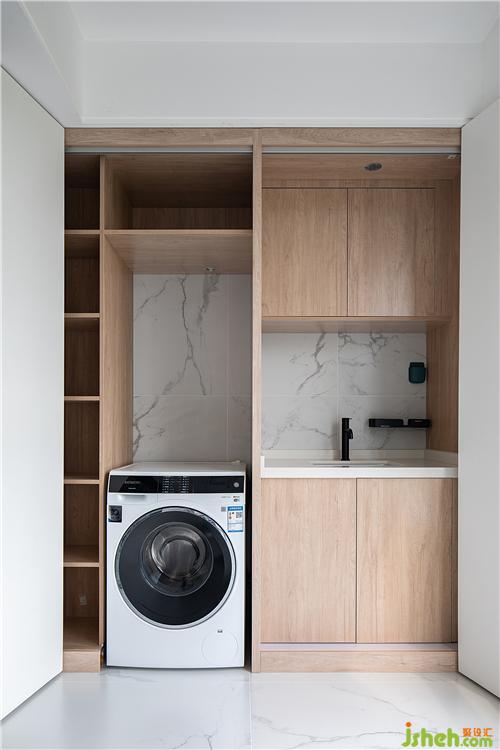 △被整合的北陽(yáng)臺(tái)的原有功能,洗衣房,也被巧妙的隱藏起來(lái)。