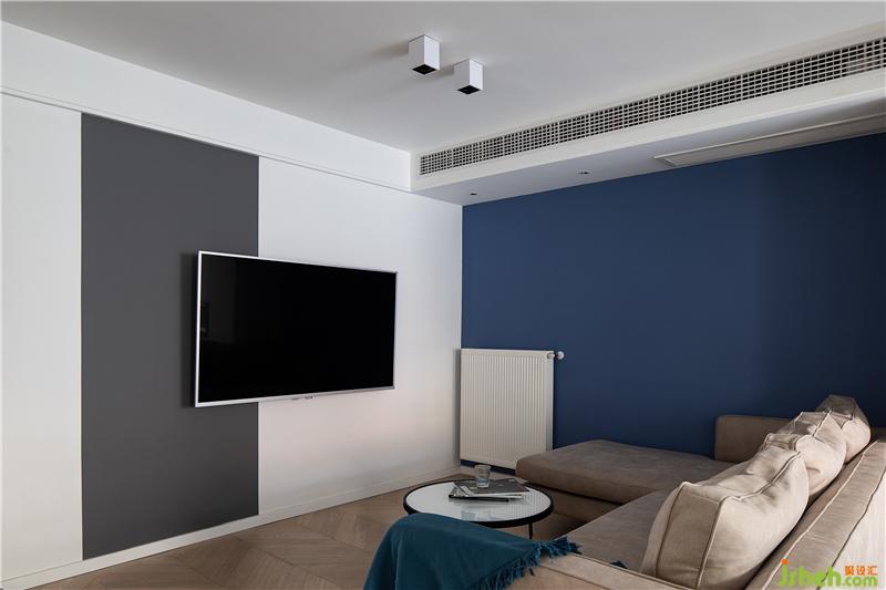▲客廳電視墻細(xì)節(jié),僅以色彩區(qū)分不同功能區(qū)域。