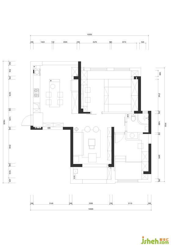 1、北陽臺拆掉,并給餐廚,做成餐廚一體。業(yè)主平時只有兩個人吃飯,所以用島臺代替?zhèn)鹘y(tǒng)餐桌。