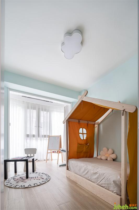 進(jìn)門(mén)左手邊就著柱子的厚度做了整排衣柜。下方幾個(gè)大抽屜可以收納玩具和娃娃,把小姑娘的心愛(ài)之物都集中起來(lái),好看又好玩的兒童房,讓孩子的獨(dú)立之旅更加容易。