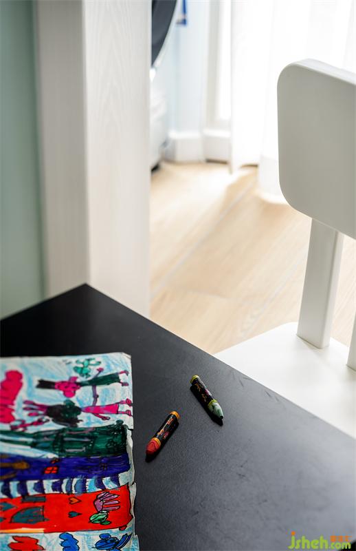 兒童房擴(kuò)大了通向陽(yáng)臺(tái)的門(mén),把采光最大限度地引進(jìn)來(lái)??蓯?ài)的冰棍床可以滿(mǎn)足現(xiàn)在小朋友的身高,之后還可以拉伸成成人尺寸。繪畫(huà)桌椅和小畫(huà)板來(lái)自宜家。
