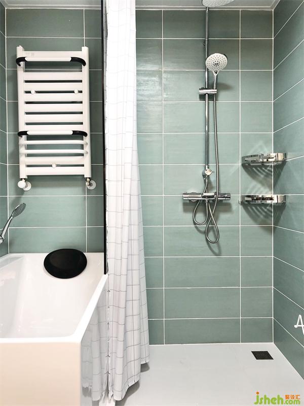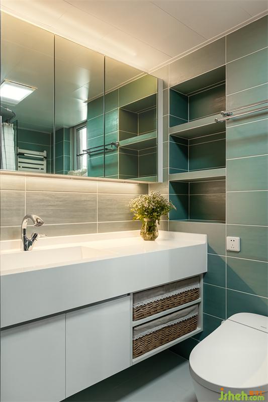 衛(wèi)生間做了整排洗手臺以及整排鏡柜,并借著包管做了壁龕,把儲物空間最大化。洗臉池為定制的人造石一體盆,水池進(jìn)行了加長,方便早上兩個人同時(shí)洗漱,上班和上學(xué)誰也不耽誤。
