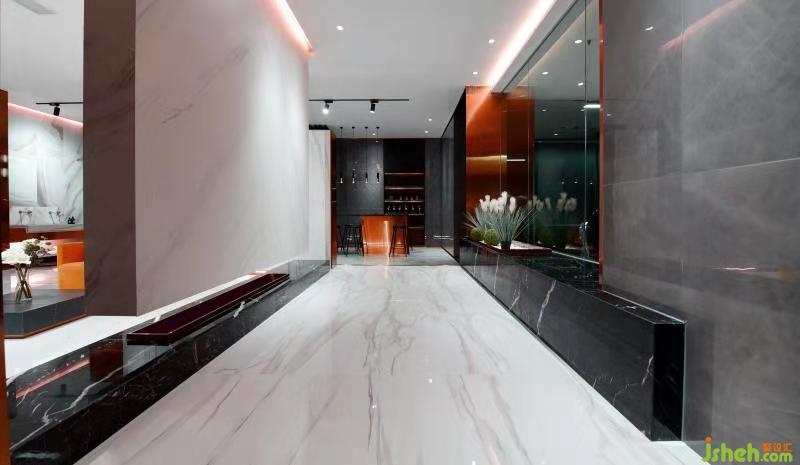 選材區(qū)作為展廳的靈魂區(qū)域,匯集了企業(yè)最豐富最核心的素材。不管終端市場(chǎng)如何改變,此處都是作為一個(gè)“永恒之城”而存在,可以說(shuō)是展廳的核心大腦。設(shè)計(jì)手法上我們采用了可裝置組裝的手法,利用瓷磚與木飾面的巧妙結(jié)合,打造一個(gè)休閑的座談區(qū)域,不但將瓷磚的特性展示出來(lái),還把空間充分利用起來(lái),讓客戶在暢談的同時(shí)也能隨時(shí)觸摸感受到這家公司瓷磚的質(zhì)量之美。室內(nèi)設(shè)計(jì)師