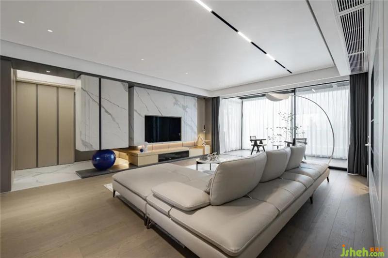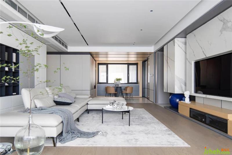 1.入戶的玄關空間視覺+功能的完美結合,玄關到客廳視覺空間的延伸性得以保留,換鞋凳的設計結合了電視柜的轉折,大收納的鞋柜儲物柜試衣鏡感應的軟膜天花一應俱全。