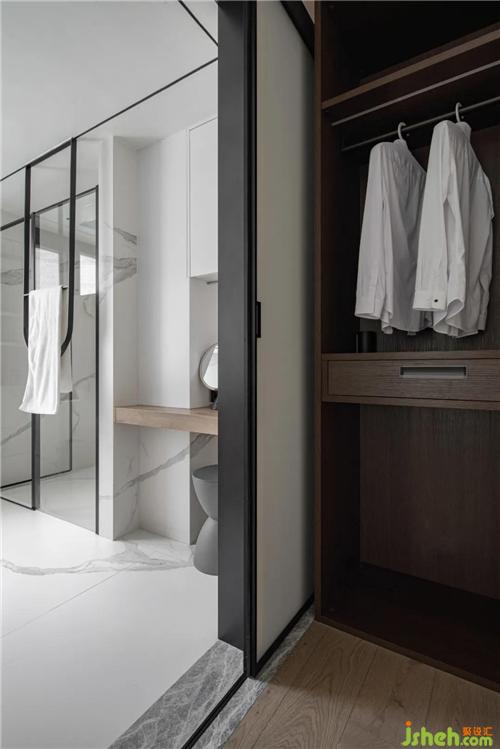 衣帽間與洗手間連接的位置做了一個梳妝臺,空間利用到位。