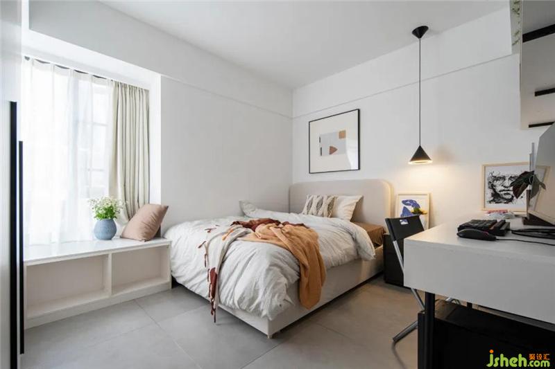 主臥日常采光極佳,無(wú)法改造的飄窗臺(tái)偶爾也能充當(dāng)閱讀區(qū),多留給屋主一個(gè)充電學(xué)習(xí)的區(qū)域。