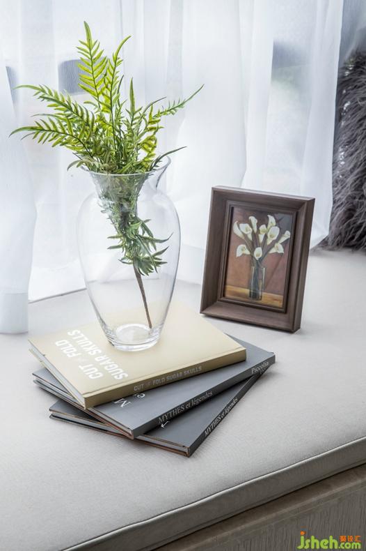 偶然出現(xiàn)的海天藍(lán)及檸檬黃點(diǎn)綴了次臥,得意而不忘形,依舊是明朗的主色調(diào)。陽(yáng)光、空氣、風(fēng)景適時(shí)流動(dòng),生活的痕跡滲透進(jìn)去,長(zhǎng)出像花一樣的紋。