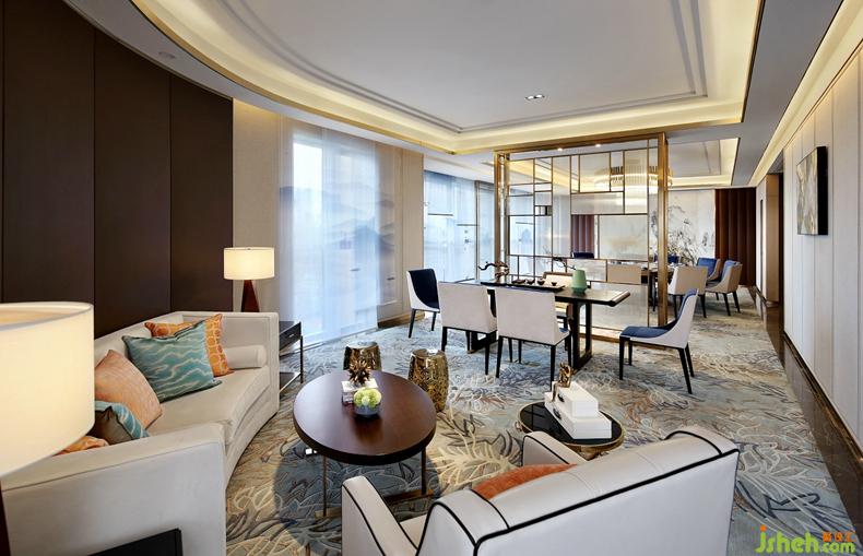 洽談區(qū)配以山水意境簾幕,客戶在交談之余亦不乏陶冶情操,將迷人美景盡收眼底。