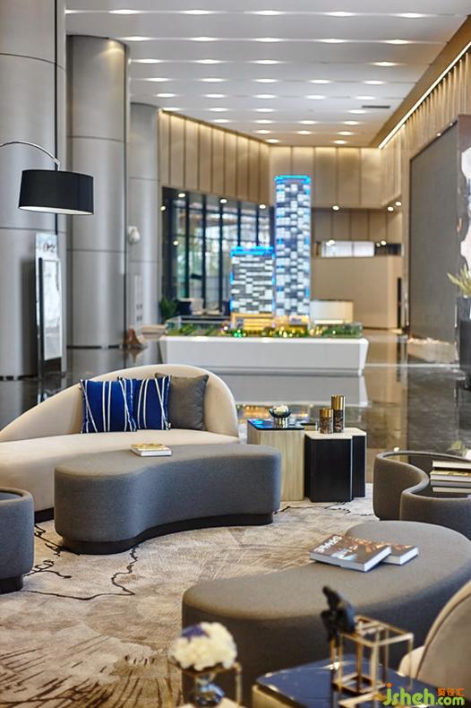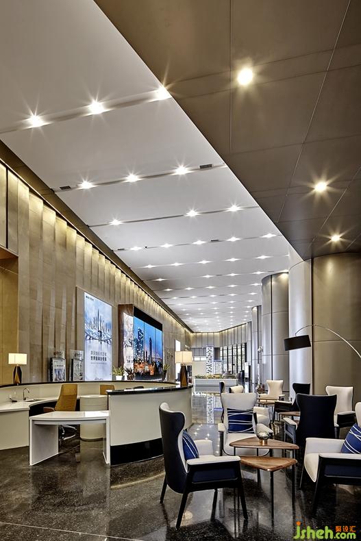 在軟裝的演繹上以硬裝設(shè)計(jì)為藍(lán)本,延續(xù)外觀建筑的造型,以弧線為中心,接待區(qū)的弧形組合,與外觀建筑完美組合形成內(nèi)外呼應(yīng),展現(xiàn)出5A的與眾不同。