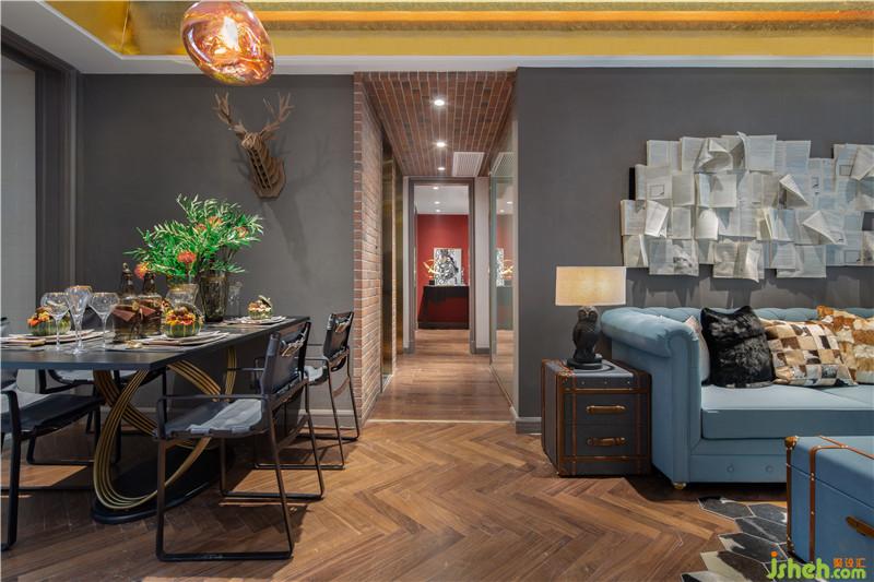將復古的灰色,高貴的藍色融入空間中,金色天花鑲邊加粗線條勾勒出空間層次,分割大空間的同時,搭配古典魔力的藝術雕塑,是別具一格的設計格調,也是藝術館般的魔幻氣質。深圳裝修公司