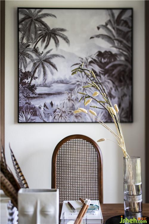 處處洋溢著的濃濃異域風(fēng),讓這個(gè)小家變身成為個(gè)性跳脫,浪漫自然的民宿風(fēng)格,木面案幾、藤編草席、抽象裝飾畫和花瓶,簡單的搭配,卻是韻味滿滿,整個(gè)空間充滿呼吸感,非常適合休閑發(fā)呆。