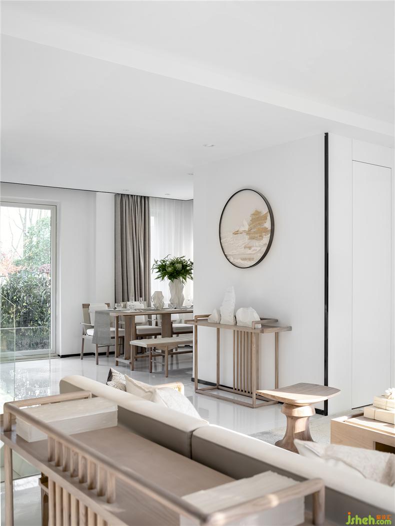 居于絕美自然中,便有了一份體悟天地大美的便利。B戶型于現(xiàn)代空間中,蘊含中式風格,延續(xù)A戶型的自由灑脫,于空間中營造詩意優(yōu)雅的物之禪境,回應項目所處之地脈文脈樣板房設計