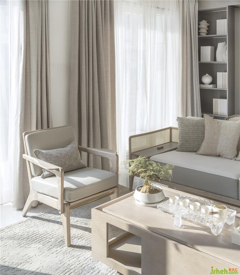 樣板房設計設計師以精致器物的選擇,抵抗當下消費主義熱鬧喧囂下的空洞無聊。選擇那些經(jīng)得起反復推敲的配飾,并以極簡的形式和素雅的色彩,隱去具體的具象,從而給思考和心靈留下空間,并發(fā)展出一種生活觀念和美學意識。