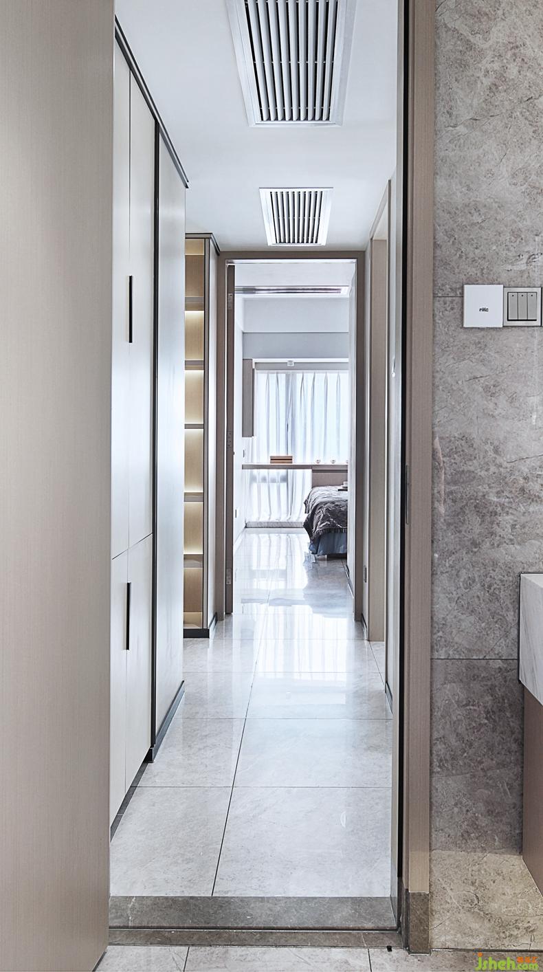 走道側(cè)面做了行李箱柜,柜子吊腳,這樣行李箱就可以直接推進(jìn)去,兩個(gè)小孩房天花沒(méi)有吊頂,所以空調(diào)裝在走道往房間出風(fēng),房門(mén)下面做了回風(fēng)。室內(nèi)設(shè)計(jì)師