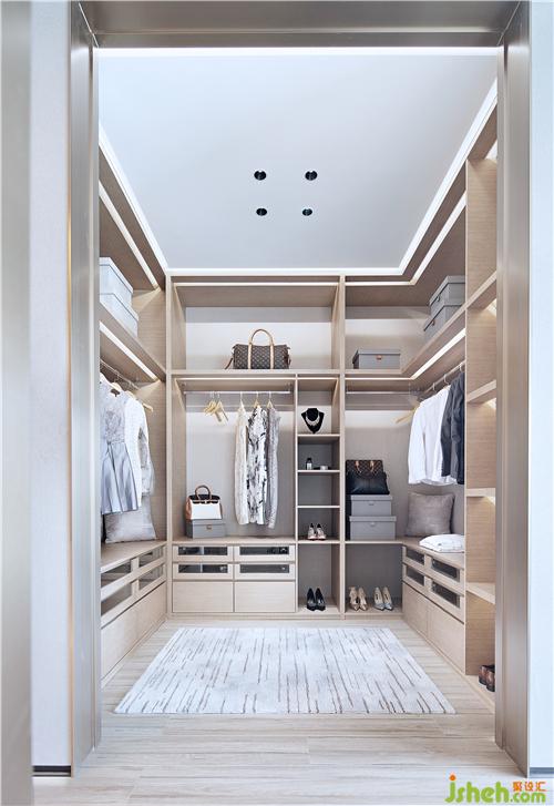 步入式衣帽間,U形柜體掛衣量大,無門設(shè)計(jì)讓空間更開闊。