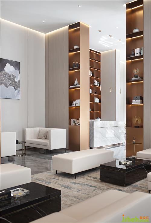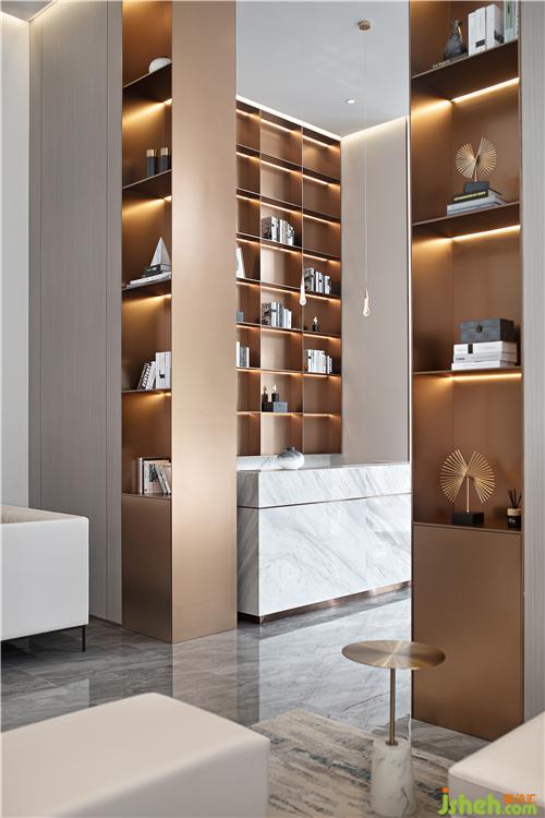 大理石底座暖色金屬臺(tái)面的小臺(tái)子加強(qiáng)了整體設(shè)計(jì)的平穩(wěn)和諧。