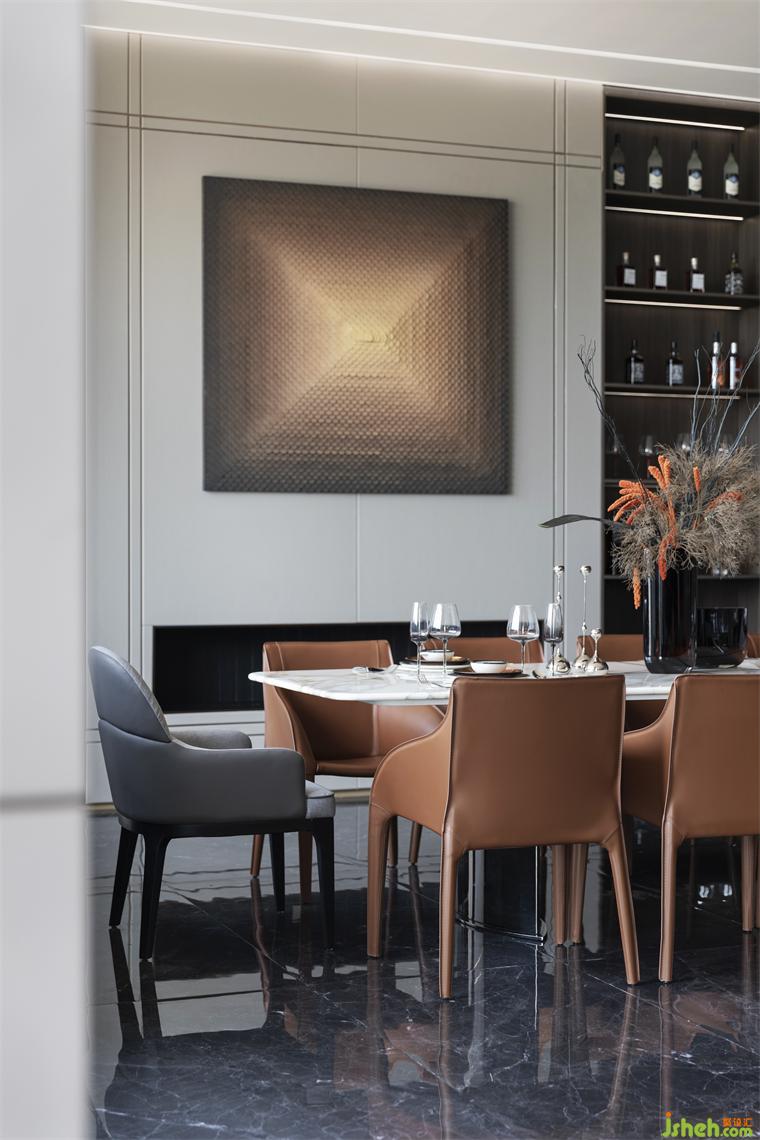 餐廳選用簡潔的意式設計家具,注重線條的簡潔和材質(zhì)的質(zhì)感。采用石材和真皮等高質(zhì)量材料,體現(xiàn)品質(zhì)感。