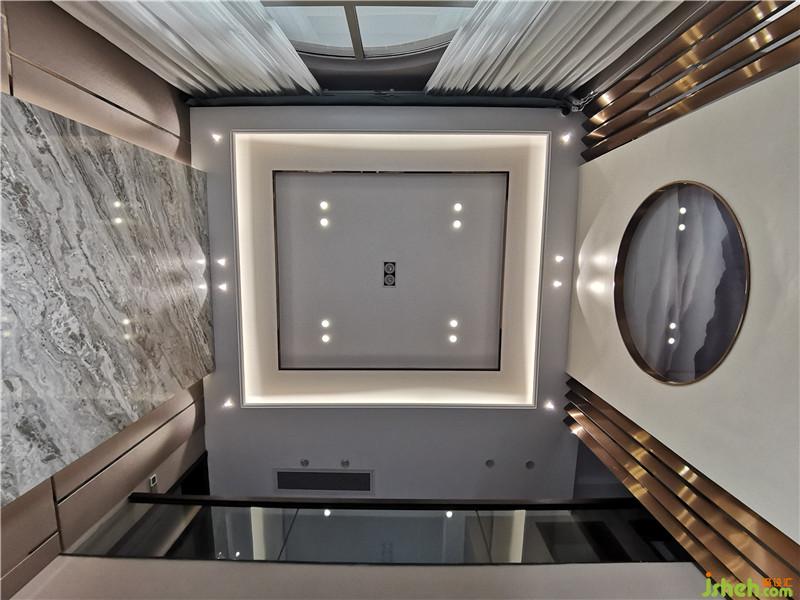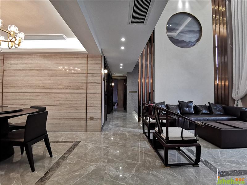 本項目面積為270方三層復式中空大廳戶型。風格定為現(xiàn)代時尚的新中式風。業(yè)主為職業(yè)教師,對美艷的新中式風尤為喜愛,設計時在現(xiàn)代時尚的手法上僅在意境上體現(xiàn)著簡約中式的表達方式,讓人既享受到時尚的優(yōu)雅,又感受到中式意境之韻,格調顯貴。本案例運用了大自然的天然石材-白金沙,該石材無論色澤或是紋理都渾然天成,一氣呵成,大氣灰宏,給人視覺沖擊甚為之高。整體空間均輔以奢華為代表的玫瑰金不銹鋼為裝飾線條,提升出時尚而奢華的空間氛圍和品位,兩側6米高的不銹鋼造型屏風以斜角45度為擺向,正如展示著主人趟開雙臂歡迎賓客一般,熱情,友愛,無比活躍。沙發(fā)背景墻面留白的處理,中間鑲嵌了一個整圓以美倫美奐的不銹鋼為邊,透著抽象的高低起伏的山群玻璃造型,正如每逢月圓人團圓的意境,更是增添了一份中式的神韻在此。室內設計師