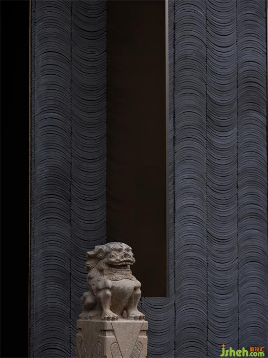 水墨畫線條勾勒出起伏的山脊線,設(shè)計以意造形,提取傳統(tǒng)建筑中的瓦屋頂、坡屋面元素,營造出當代語境中的山水意象。青瓦、舊木排列重組,具有想象空間的留白,儒雅的書院氣質(zhì)渾然天成。新的介質(zhì)參與,使空間與舊街區(qū)產(chǎn)生一種新的關(guān)聯(lián)。