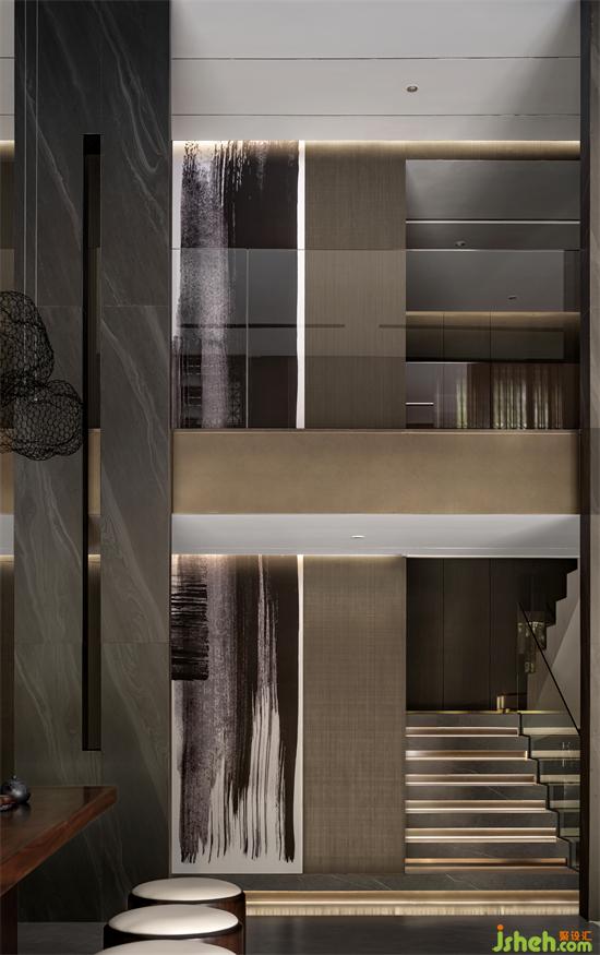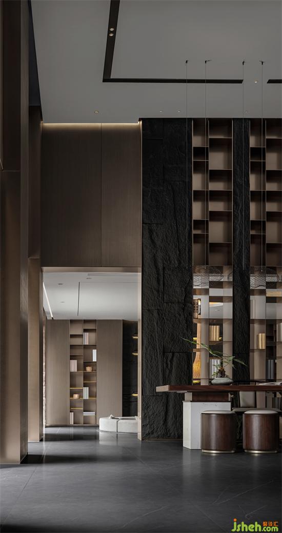 東方水墨意境延展至室內(nèi)空間,自然質(zhì)樸的材質(zhì),強調(diào)本身的屬性與美感。通過巖板、石材、木飾面、金屬、瓦片等新舊材料的有序組合、當(dāng)代的表達,使材料的物質(zhì)屬性和傳遞的精神意向互相作用,私人會所設(shè)計讓空間變得純粹而富有情感張力。