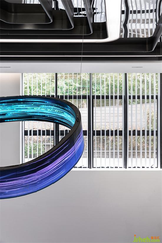 設(shè)計(jì)師采用智能交互式體驗(yàn)裝置革新傳統(tǒng)的展示形式,交互式感應(yīng)裝置的應(yīng)用使觀者能更直觀地體驗(yàn)不同種類(lèi)物質(zhì)的降解過(guò)程,展廳設(shè)計(jì)與此同時(shí),設(shè)計(jì)師將空間中的多媒體設(shè)備、燈光、遮陽(yáng)、暖通等設(shè)備智能物聯(lián),通過(guò)終端系統(tǒng)高度集成控制,營(yíng)造良好空間體驗(yàn)的同時(shí),建筑的管理與運(yùn)營(yíng)也變得更加智能、便捷。