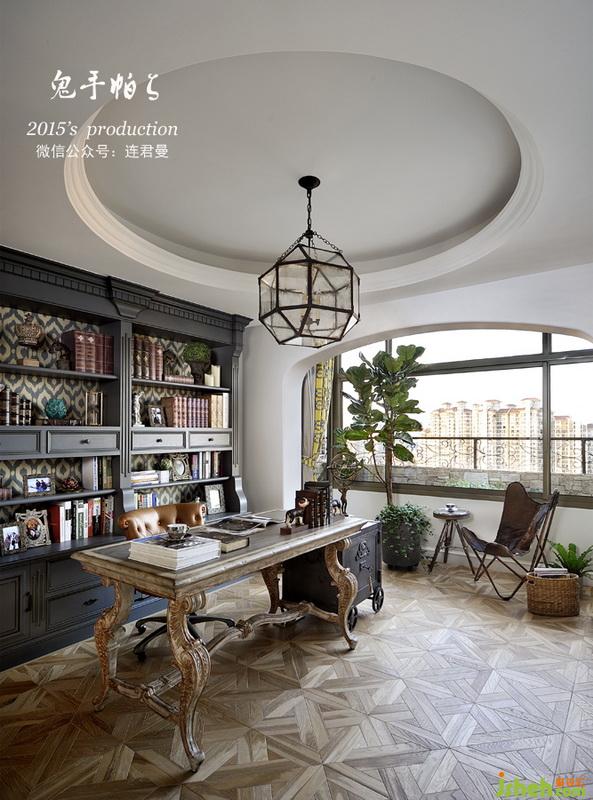 起居室兼書房,陽臺被包入室內(nèi)作為閱讀區(qū)。