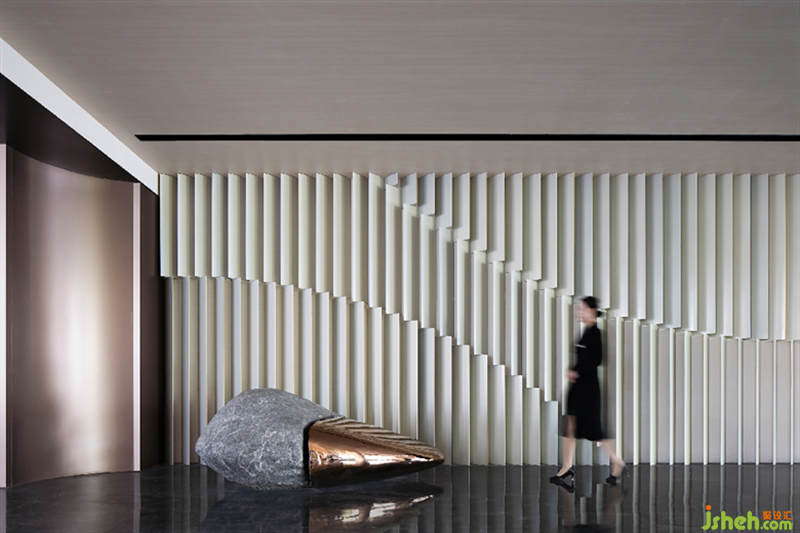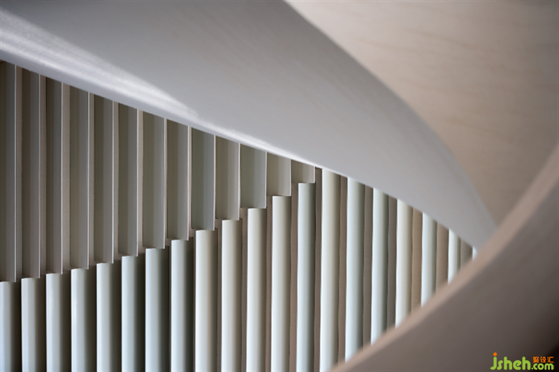 邏輯并不復雜的“波浪”立面,將白色的層次與光線制造的陰影相互交織切割,形成一種連貫的視覺呈現(xiàn),逆向的模塊翻折詮釋出空間層次的內(nèi)在涵義。幾何結(jié)構(gòu)的拼接曲線引入另一個視覺角度,不同時光于是有了不同“景觀”的呈現(xiàn)。