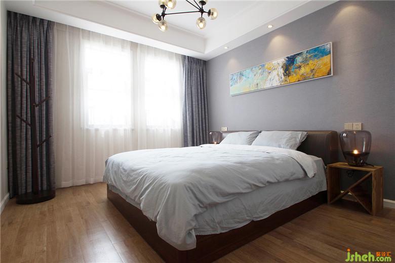 主臥室內(nèi)設(shè)計(jì)師使用配色更加清淡,營(yíng)造舒適的休息空間。