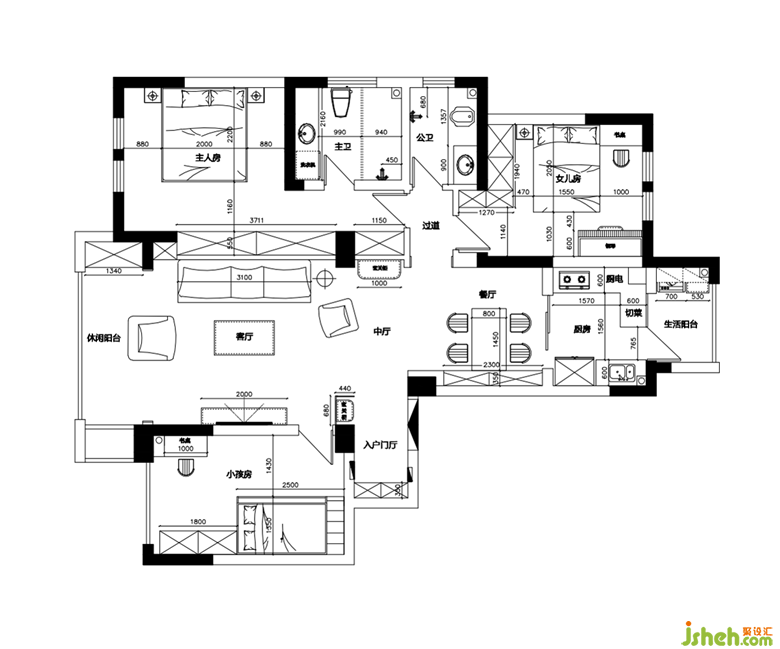 一幅抽象畫成為空間的視覺(jué)焦點(diǎn),起著點(diǎn)睛的作用!