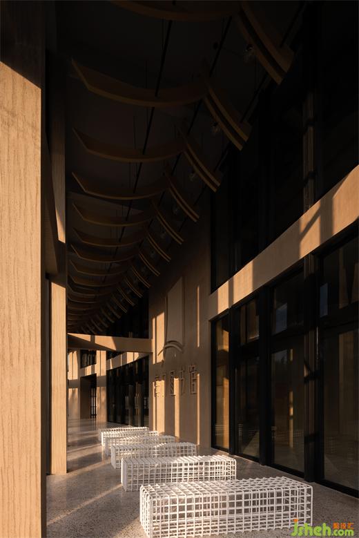 圖書(shū)館設(shè)計(jì)主題建筑的形狀,兩個(gè)球的概念。(主建筑的形狀是根據(jù)海岸線的自然形態(tài)。同時(shí)定點(diǎn)了園區(qū)內(nèi)的重要建筑和景點(diǎn),形成了兩個(gè)直徑分別150和180米的大圓圈,透過(guò)自轉(zhuǎn)360度的互相重疊而形成的一種「參數(shù)化」數(shù)據(jù)而演變出來(lái)的形態(tài)、這些都意味著這個(gè)社區(qū)的靈魂精神元素都被收集在這個(gè)建筑內(nèi)。)