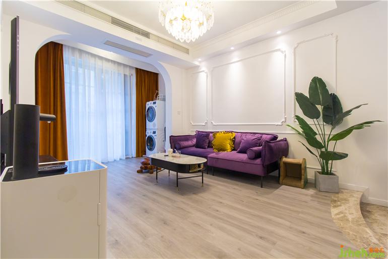 本案是一對年輕夫妻的新居,男主人喜歡電競,女主人喜歡攝影,是一位十分浪漫且時尚的人。深圳家裝設(shè)計在整體布局上充分結(jié)合了主人對空間的需求,將法式的浪漫與主人的優(yōu)雅氣質(zhì)相融合,選擇以法式輕奢風進行完美演繹,每一個細節(jié)都輕得起推敲,讓人身心愉悅。色彩方面選擇了較為少女的粉色,大面積留白,法式的雕花線條,構(gòu)筑了法式輕奢的迷人魅力,猶如同打開一個包裝精致的禮盒一般,滿足你的期待,又超出你的想象,應接不暇、意猶未盡。告別厚重的電視背景墻,選用復古黑色電視柜與茶幾相呼應,高貴的紫色布藝沙發(fā),配上暖棕色,微妙的平衡、意外的和諧。柔和的基調(diào)再搭配精致的法式雕花線條,讓整個客廳多了一絲俏皮的精致感。